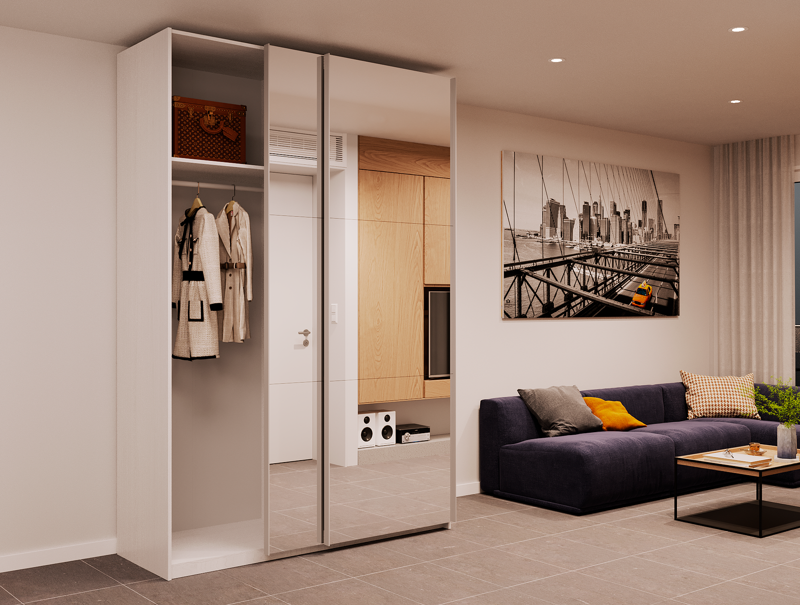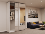 Практична шафа-купе, що не вимагає багато вільного простору, підходить для будь-якого приміщення. Не порушуючи загальну гармонію, він стає невід’ємною функціональною частиною будь-якого інтер’єру і чудово виконує свою головну функцію – вміщує максимальну кількість речей різного призначення; від подушок до одягу на вішалках і від дошки для прасування до жіночої біжутерії.