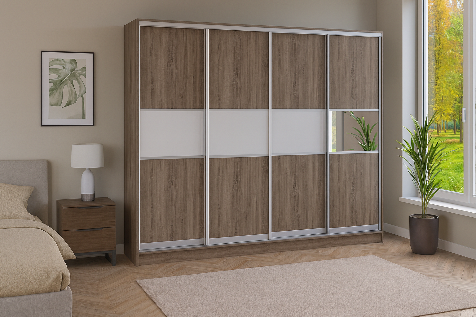 Шафа купе “Київський Стандарт” Комбі, Ширина 2400 мм\Висота 2400 мм\Глибина 600 мм, 4 дверна