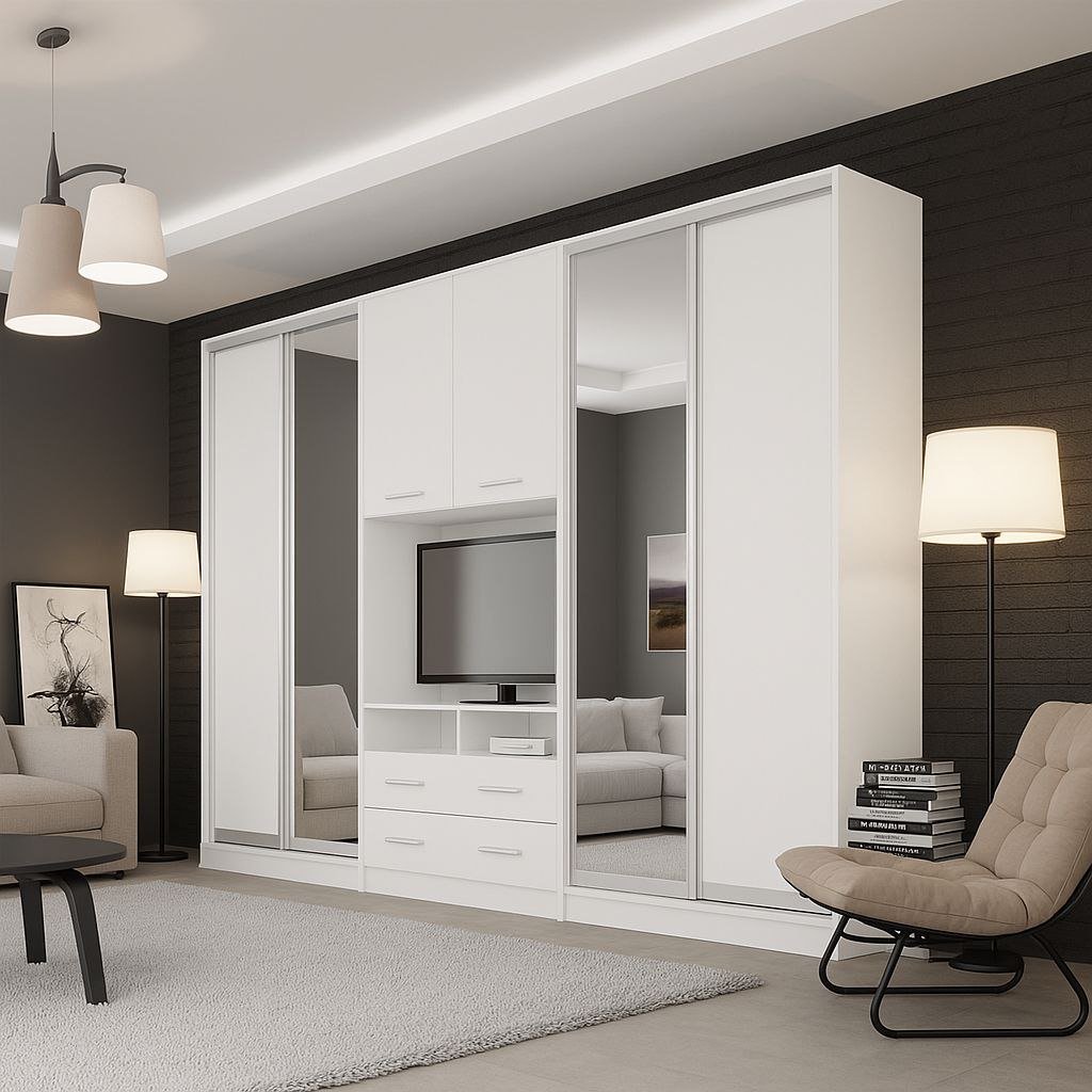 Практична шафа-купе, що не вимагає багато вільного простору, підходить для будь-якого приміщення. Не порушуючи загальну гармонію, він стає невід’ємною функціональною частиною будь-якого інтер’єру і чудово виконує свою головну функцію – вміщує максимальну кількість речей різного призначення; від подушок до одягу на вішалках і від дошки для прасування до жіночої біжутерії.