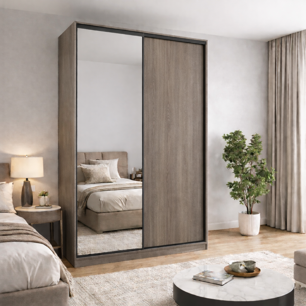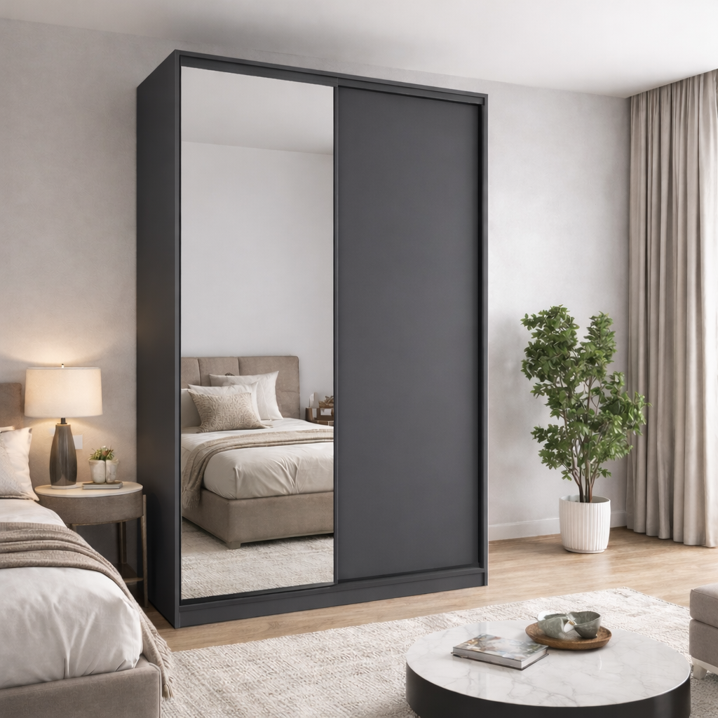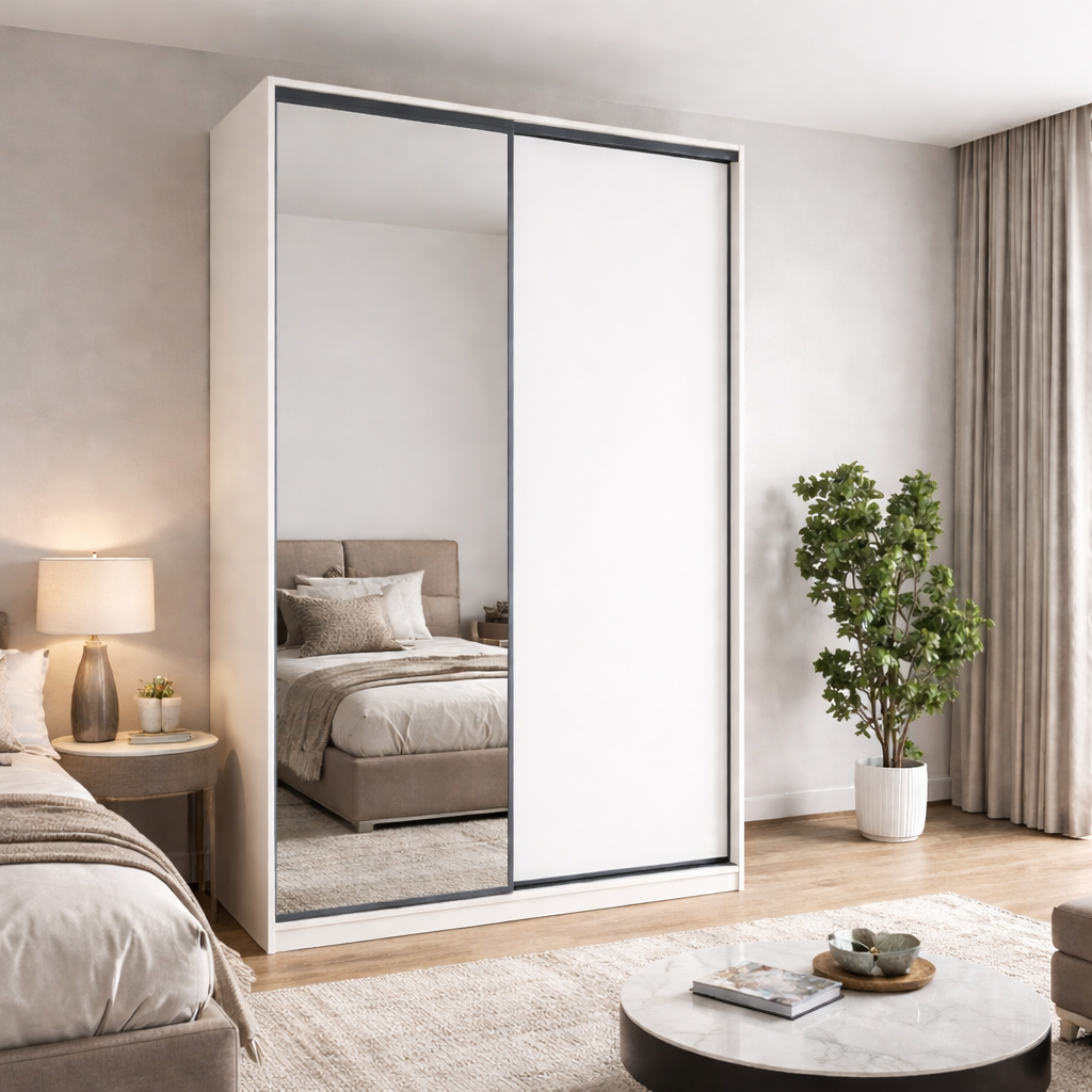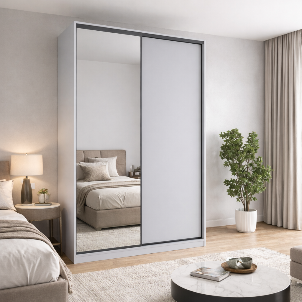 Шафа купе Стандарт 1500 потішить вас приємним дизайном і відмінним функціоналом. Модель універсально розташується в будь-якій кімнаті, (будь-то прихожа, спальня чи вітальня) . А фасад з дзеркалом доповнює красивий інтер’єр .Замовити шафу можна безпосередньо на нашому сайті, обравши улюблений відтінок із широкого асортименту.
