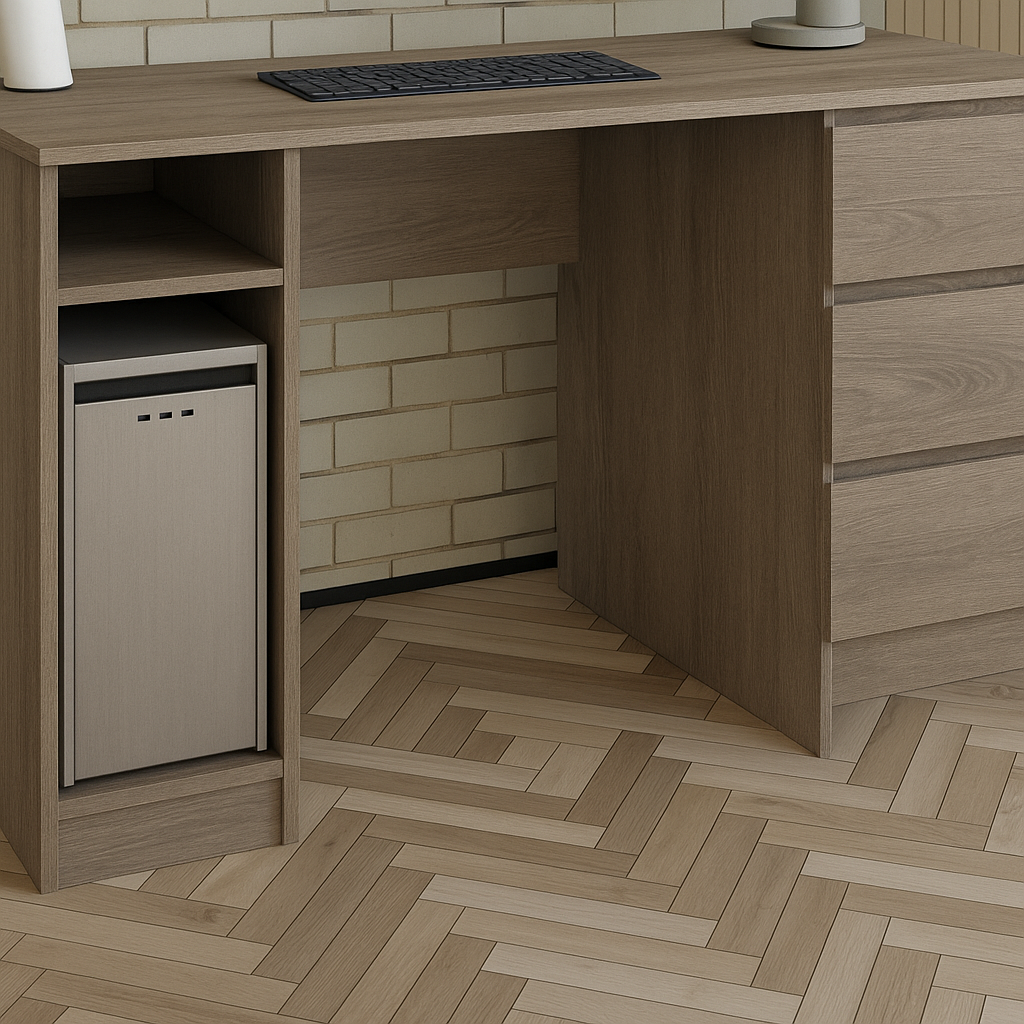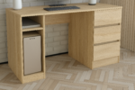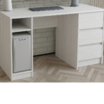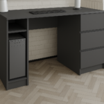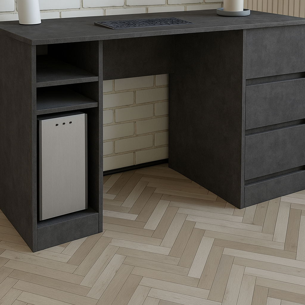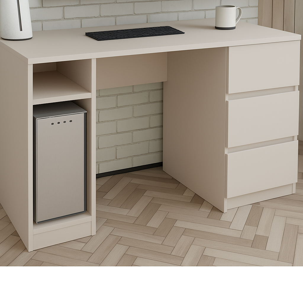 Письмовий стіл займає центральне місце у оформленні робочої зони. Він може розташовуватись у домашньому офісі, на роботі, у дитячій кімнаті у виділеній робочій зоні, у бібліотеці та просторому кабінеті. Стіл підійде для робочого місця та зберігання безлічі дрібниць. У шафку можна прибрати письмове приладдя та дрібні предмети.