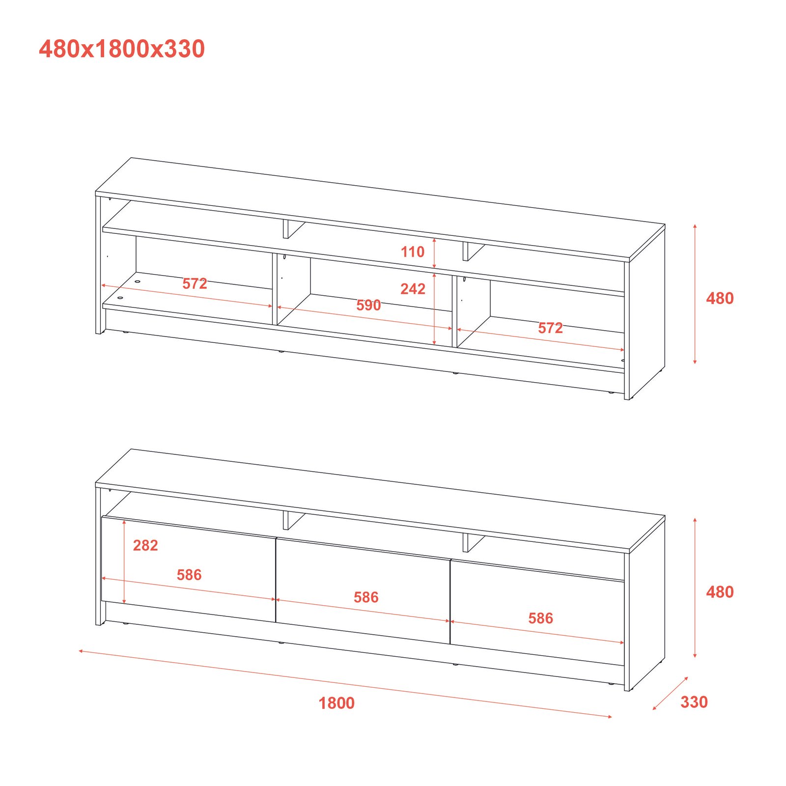 Тумба ТВ U3 “Doros”,Ширина 1800 мм\Висота 430 мм\Глибина 330 мм